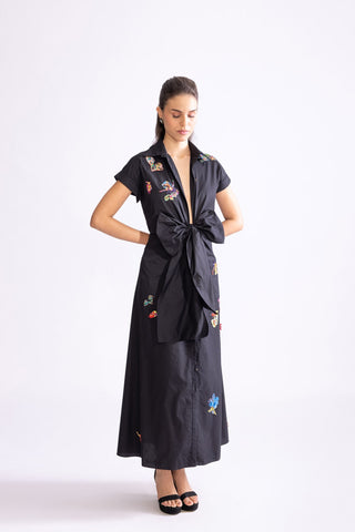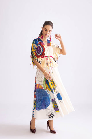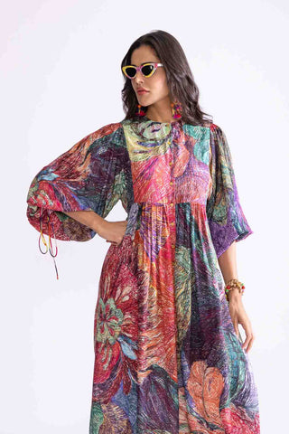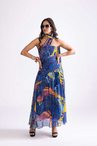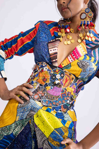 Periwinkle bandhani print, hand micro pleated overlap style sleeveless