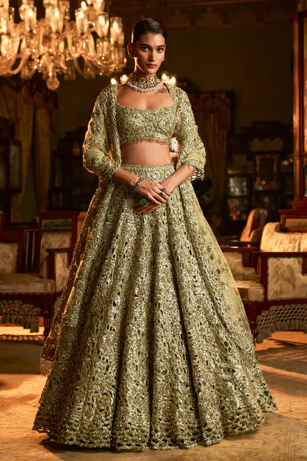 Sage Green Cut Work Lehenga Set Sale priceR 74,321