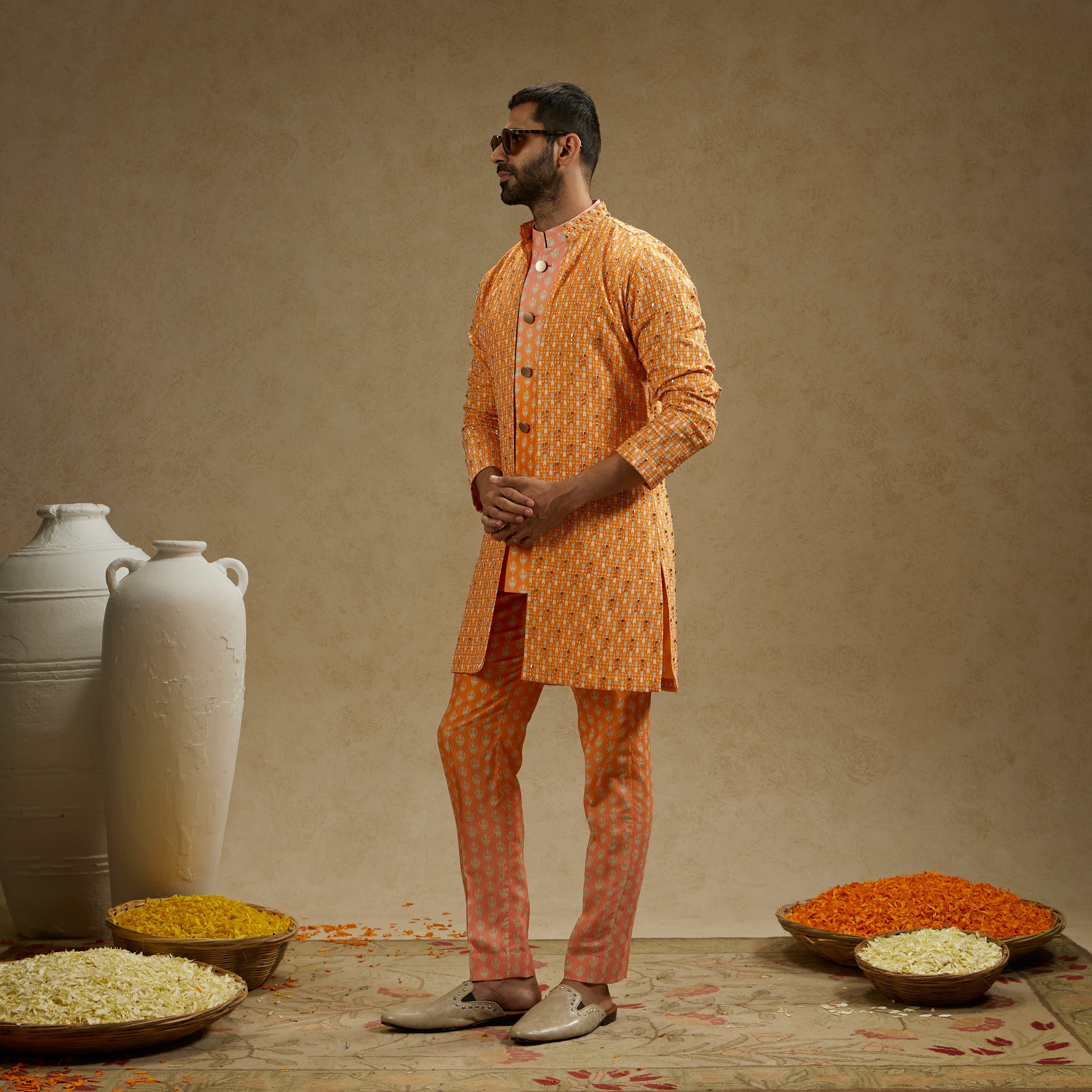 For custom orders, the scale and placement of motifs, patterns, and design elements may shift according to the client’s measurements and sizing. Reference images shown on standard sample sizes may not reflect proportion changes that occur when translating a design to a different size. Such adjustments are a normal and expected part of creating a made-to-order, handcrafted garment.