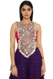 Alaine Hot Pink Colour Georgette Yoke Embroidered Bandhani Bustier And Purple Georgette Frill Sharara Sale price$635