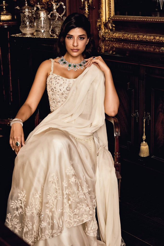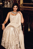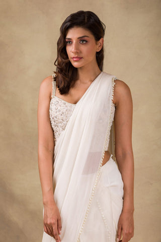Pearl Embroidered Blouse. Draped Ruffle Saree - Pure Chiffon with Organza & Crepe.