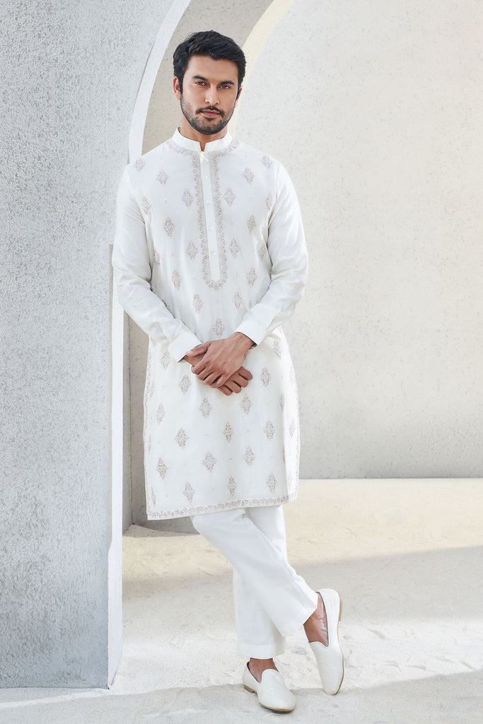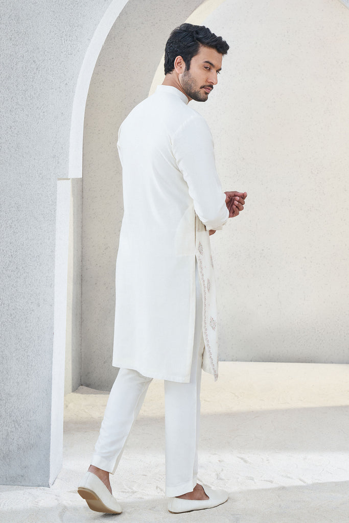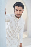 Handwoven with love, Anvit is designed to make you look dapper. The delicately crafted motifs elevate the look of this kurta, making it a festive classic.