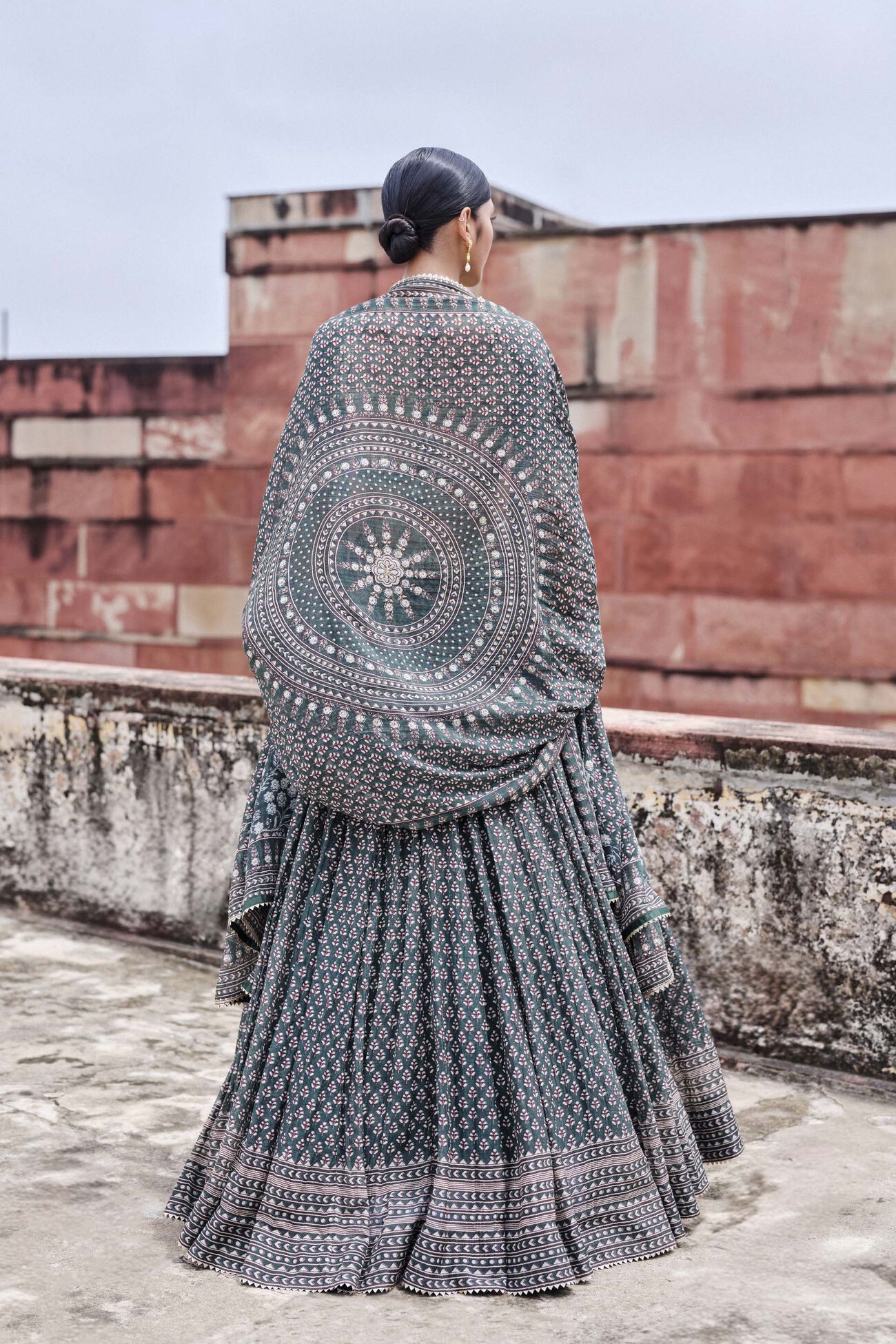 Arvia Printed Mul Lehenga Set - Green Sale price$1,830