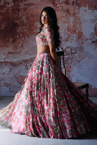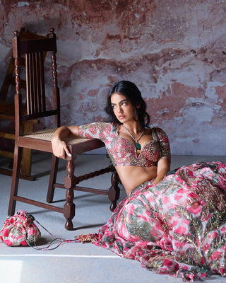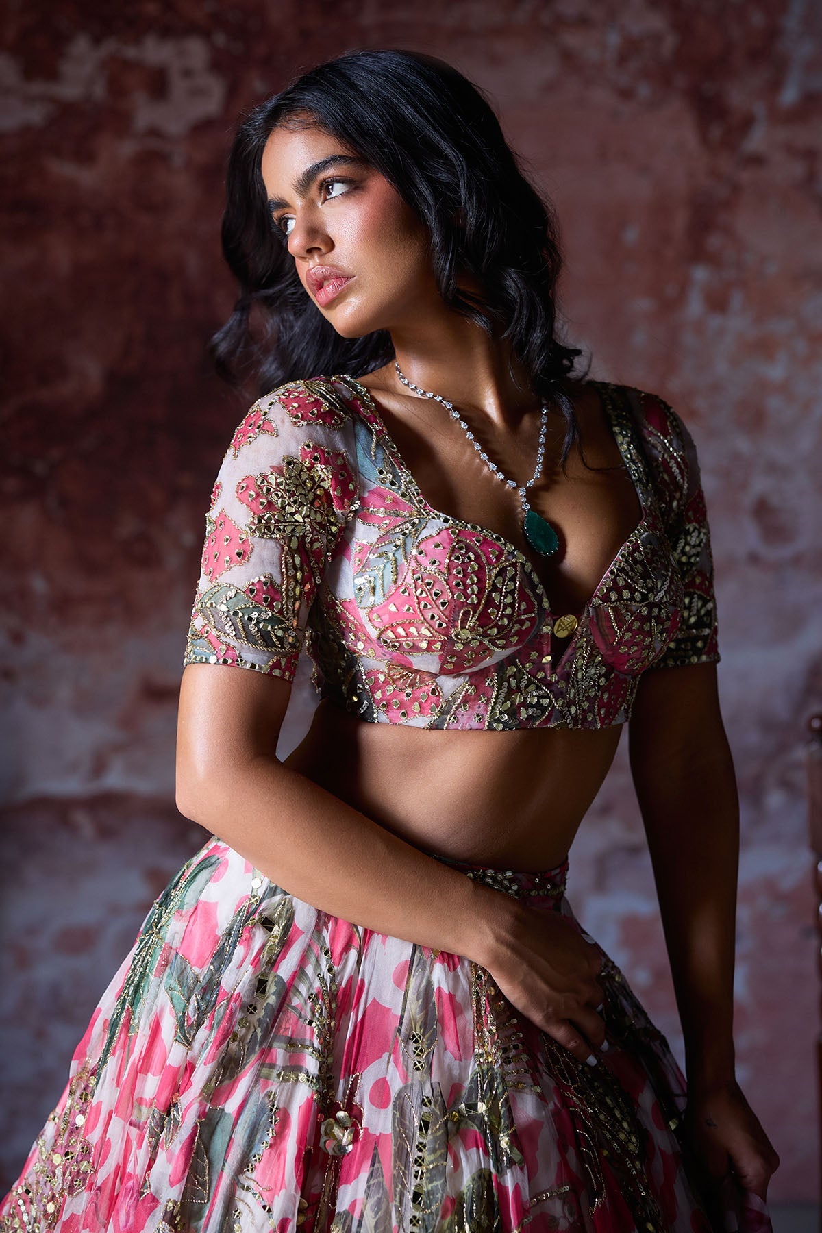 EMBROIDERED BLOUSE WITH HEAVILY EMBROIDERED LEHENGA AND EMBROIDERED DUPATTA