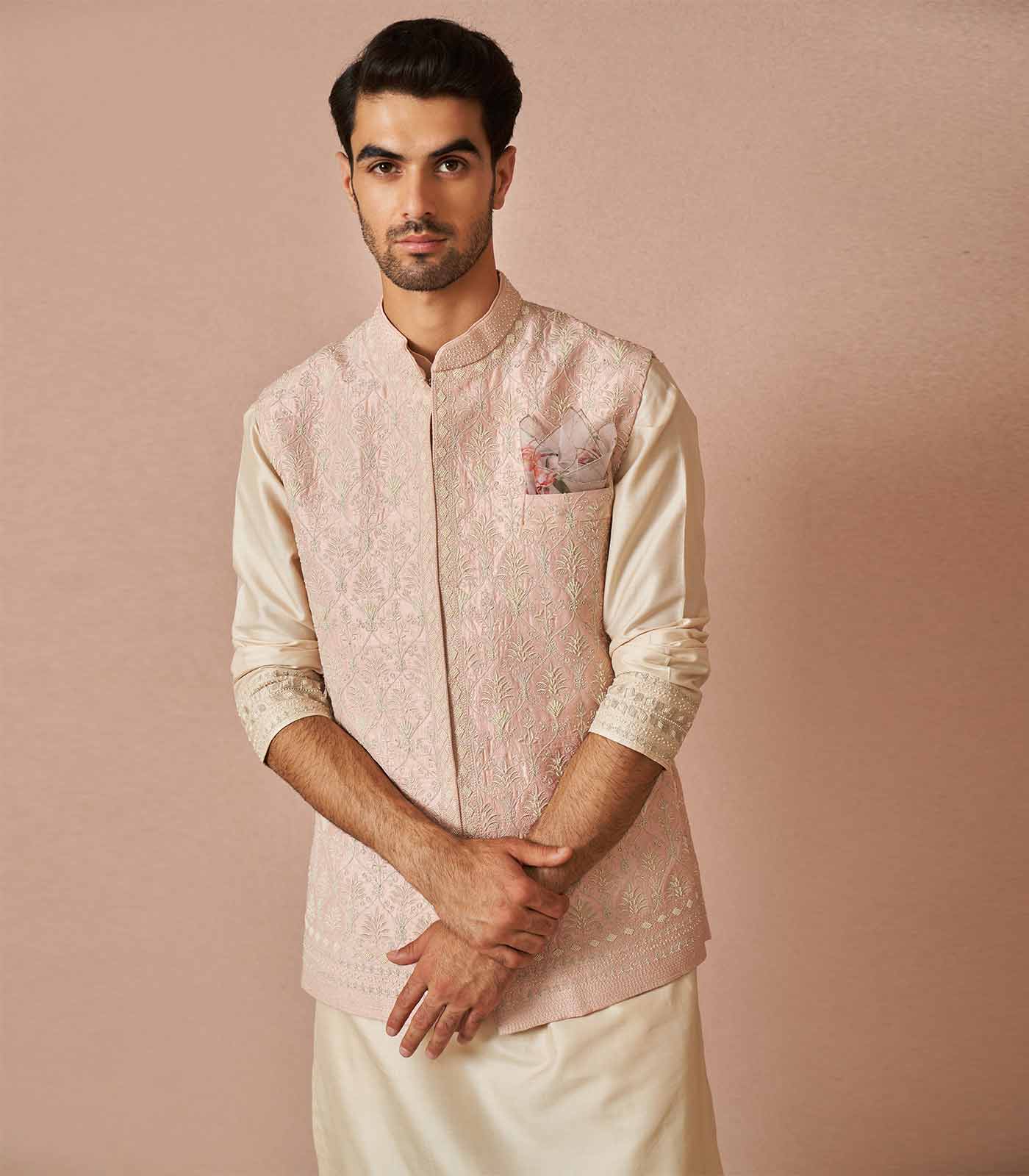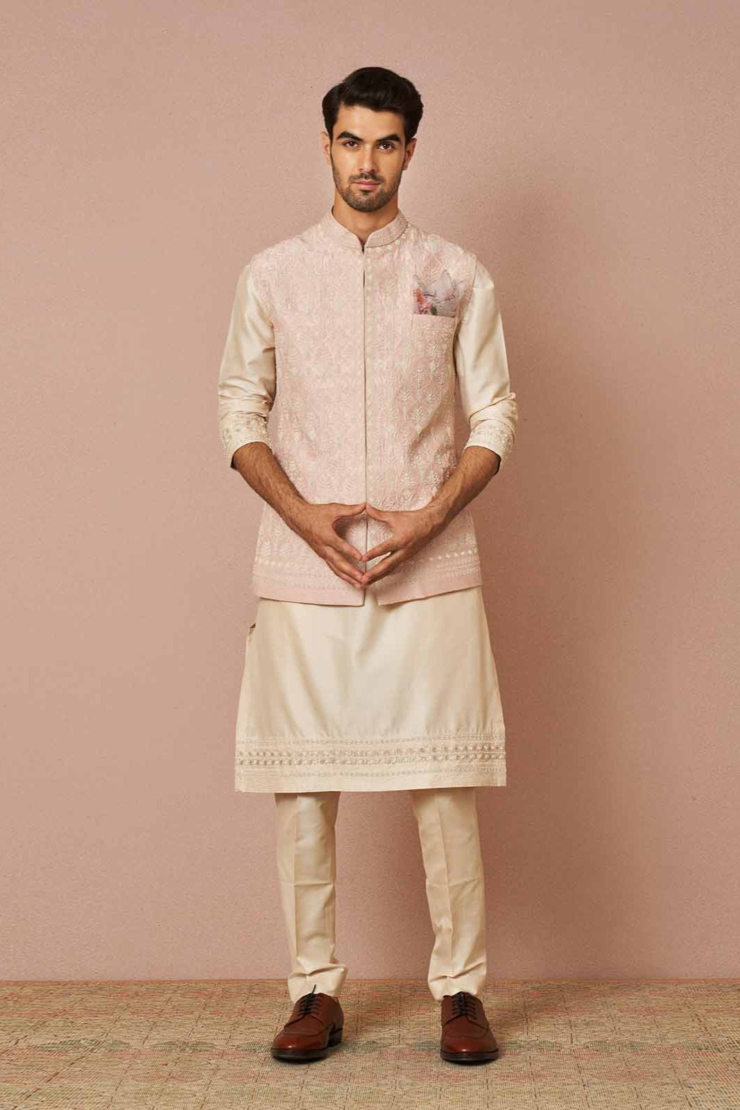 Baby pink rawsilk armaan pearl embroidered bandi set