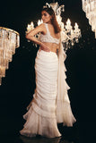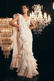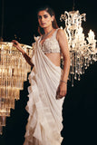 Ivory thread embroidered net blouse with Chiffon organza Double draped ruffle saree