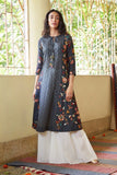 Label Anushree: Hand embroidered silk kurta with panels of kalam prints & handmade tassels, paired with hand woven white palazzos.