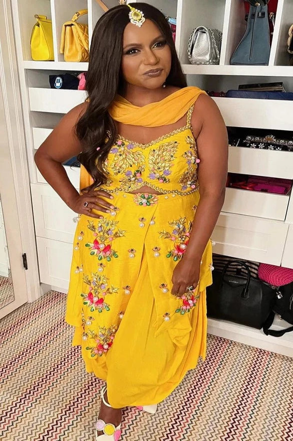 As seen attired from Studio East6! Mindy Kaling in Designer Papa Don't Preach: Dhoti jumpsuit