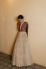 Silk gown with delicate block print & a hand beaded threadwork yoke