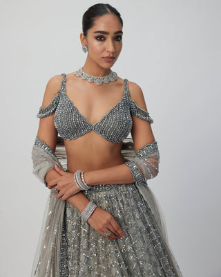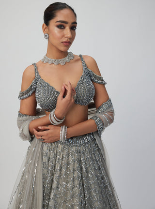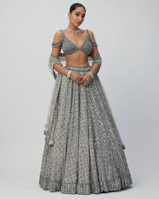 Crystal Grey Sequins Embroidered Lehenga Set Sale price$2,100