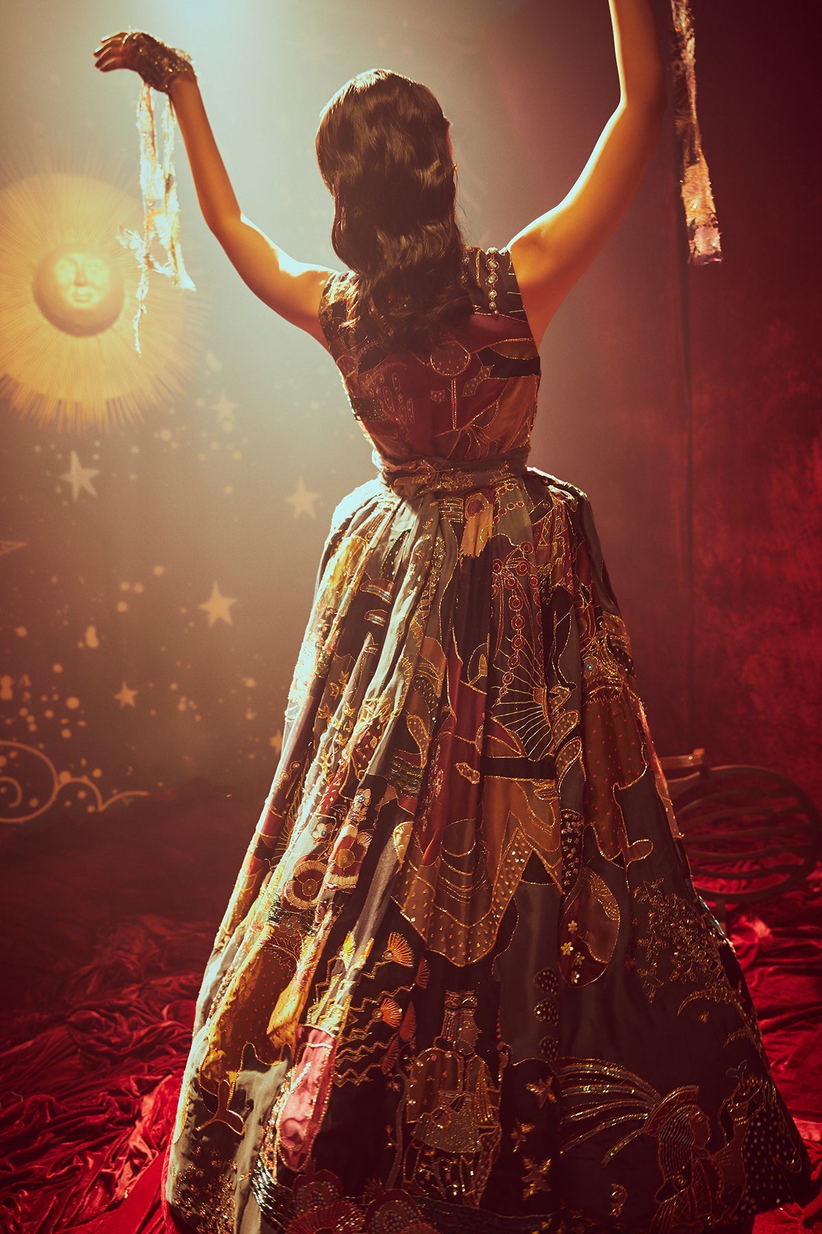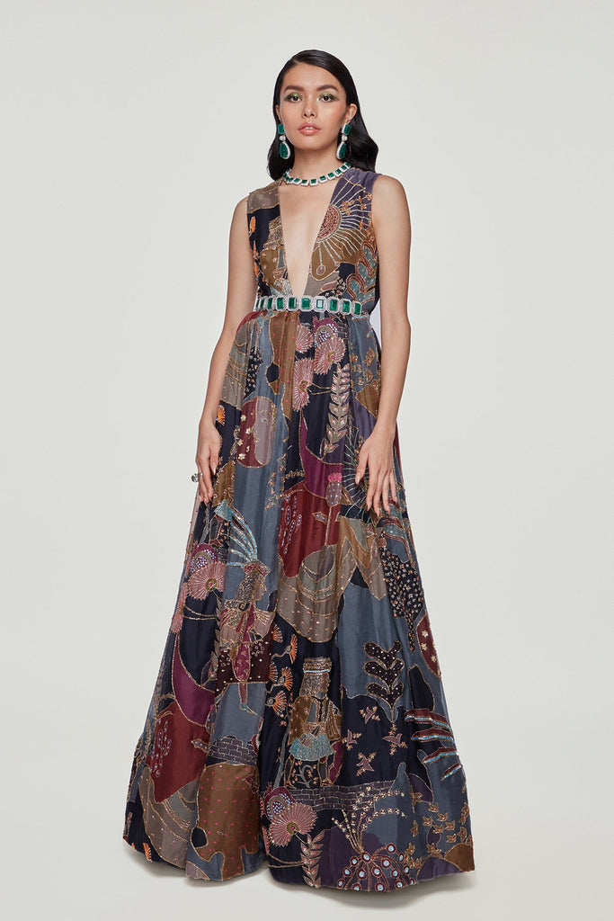 Amara - dark knight paper dolls organza printed and embellished gown