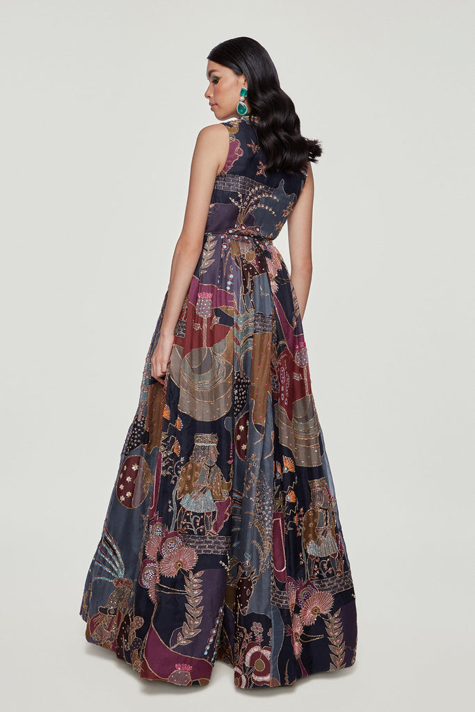 AMARA - Dark Knight Paper Dolls Organza Printed and Embellished Gown