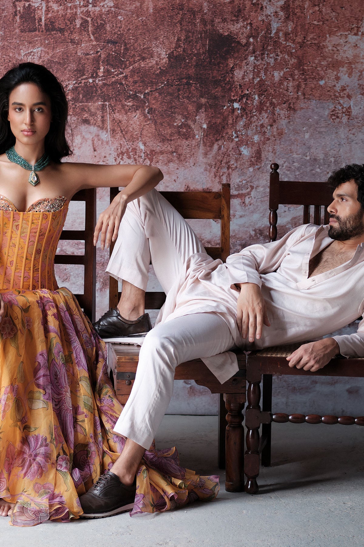 For custom orders, the scale and placement of motifs, patterns, and design elements may shift according to the client’s measurements and sizing. Reference images shown on standard sample sizes may not reflect proportion changes that occur when translating a design to a different size. Such adjustments are a normal and expected part of creating a made-to-order, handcrafted garment.