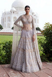 • BEIGE LEHENGA HANDCRAFTED WITH CRYSTALS AND BEADS ON ETHNIC MOTIFS