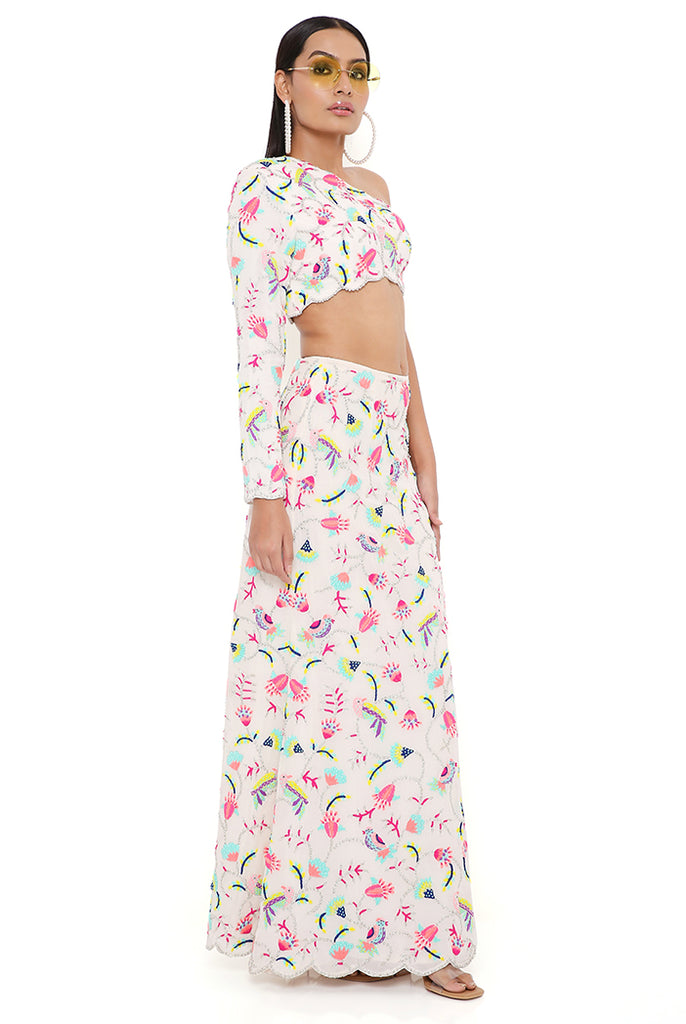 ELSA STONE GEORGETTE EMBROIDERED TOP AND SKIRT