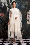 • LIGHT BEIGE SILK THREAD KURTA WITH MIRROR WORK DETAILING AND BEADS,