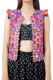 Designer Payal Singhal: HUMAIRA BLACK COLOUR GEORGETTE EMBROIDERED SHORT JACKET WITH BANDHANI SILK BUSTIER AND JOGGER PANT