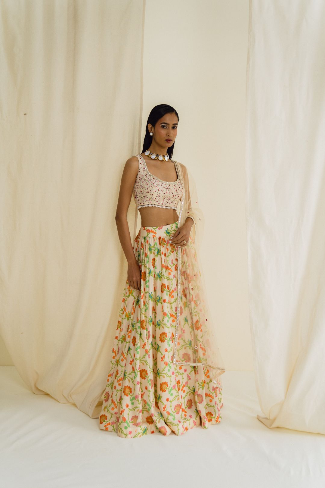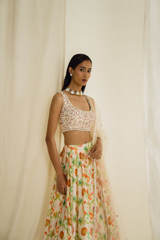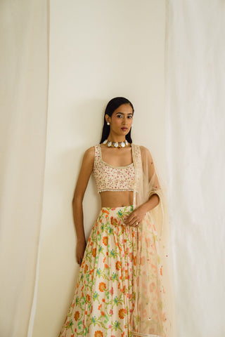 Ivory printed lehenga set