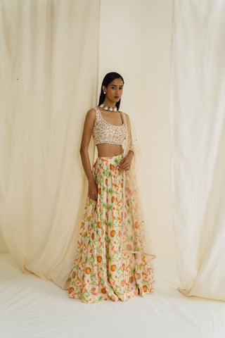 Ivory Printed lehenga Set
