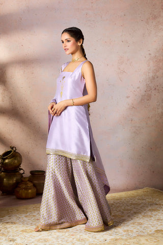 Fabric: Tunic- Raw Silk, Sharara- Raw Silk, Dupatta- Organza
