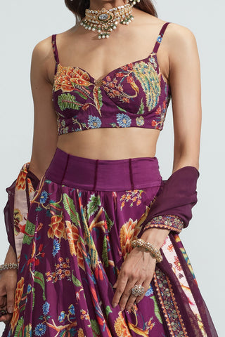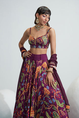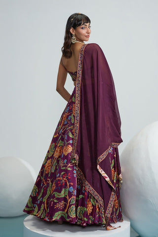 purple satin organza Embroidered lehenga set, embroidered blouse and organza embroidered dupatta set