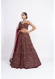 Mahroon Fully Embroidered Corset Lehenga Set Sale price$2,485