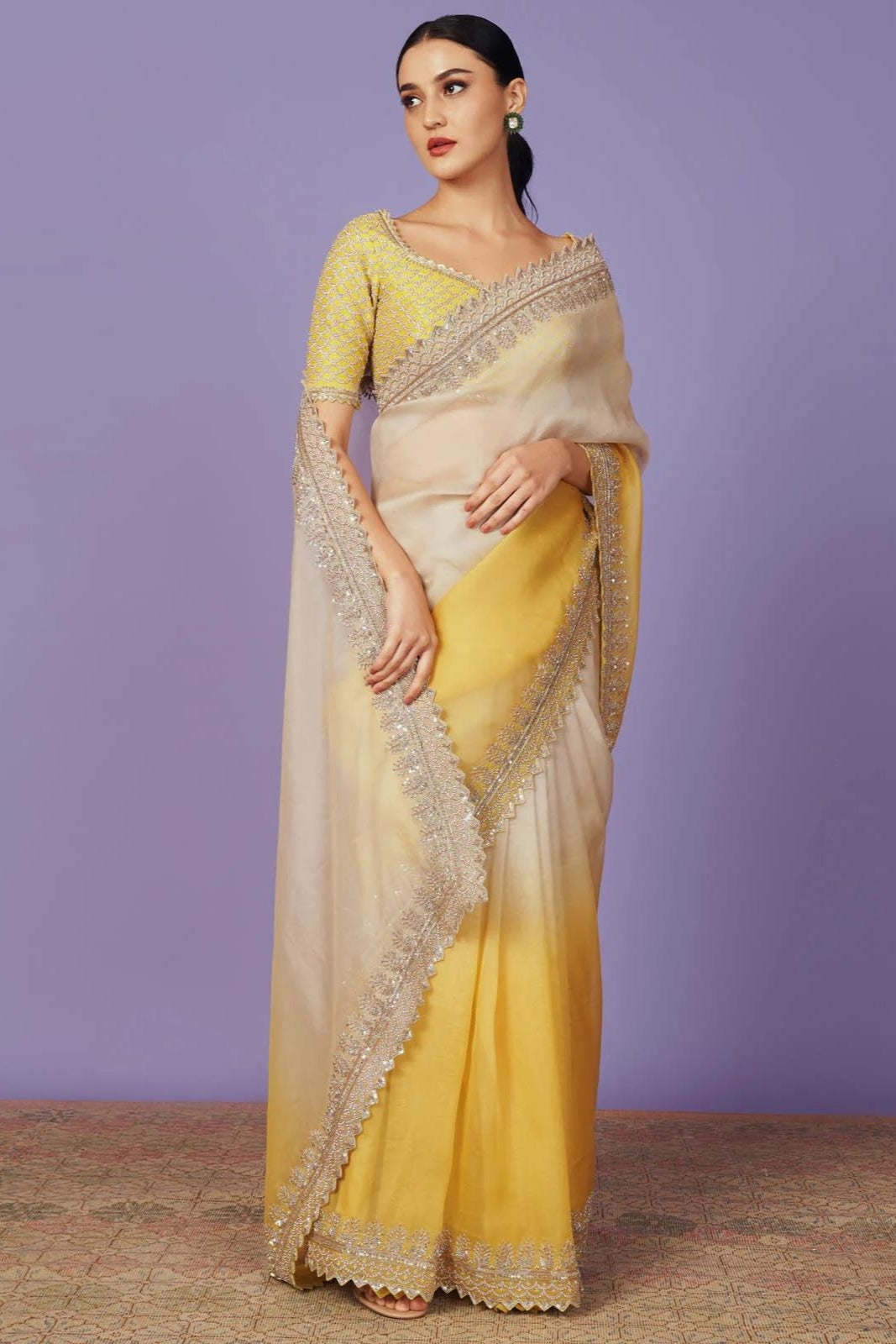 YELLOW & IVORY ORGANZA OMBRE NADIRA SAREE SET