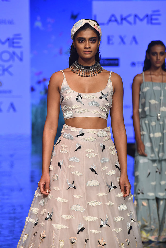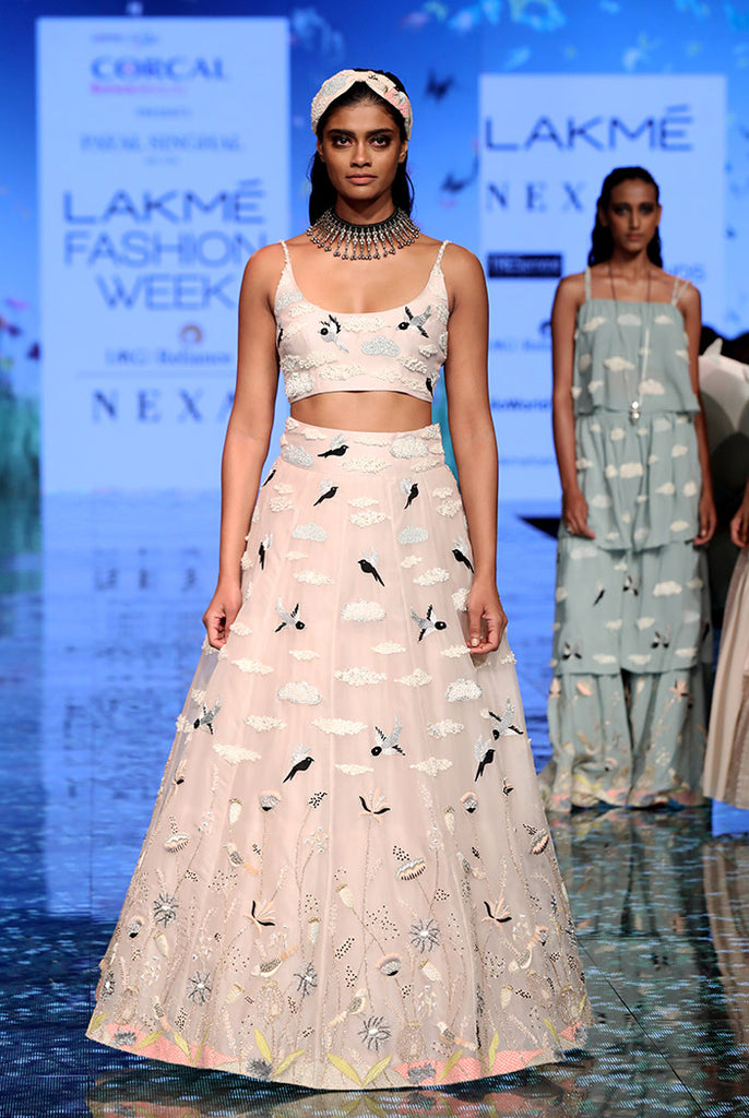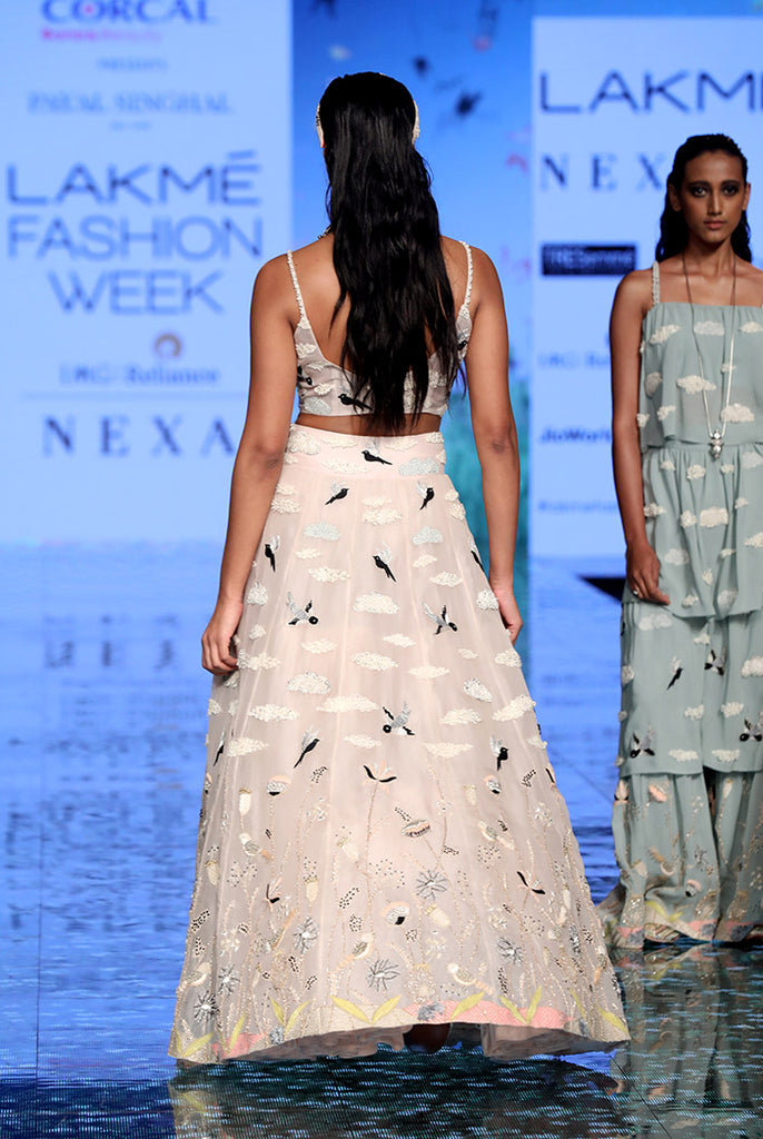 Designer Payal Singhal: Dusky rose organza embroidered choli and lehenga