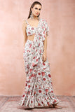 OFF WHITE GULBAGH PRINT EMBROIDERED CHOLI WITH PRE-STITCHED FRILL SAREE