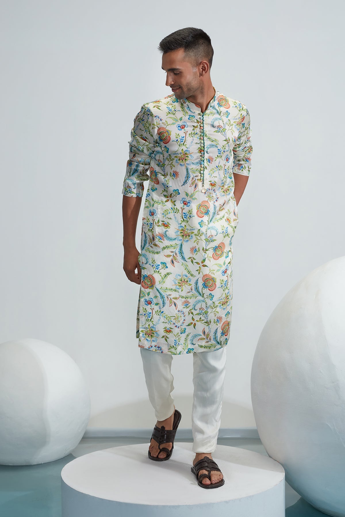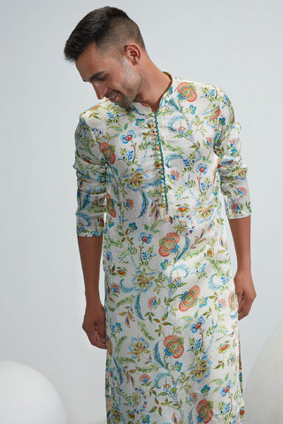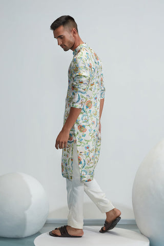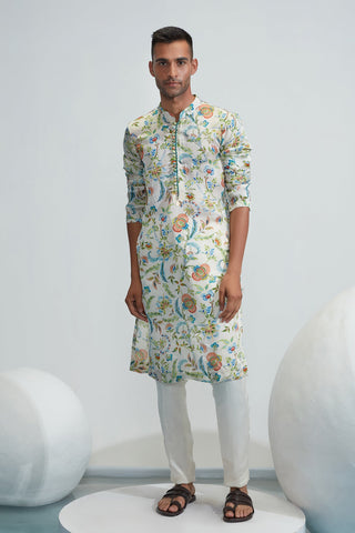 Ivory satin organza printed kurta with ivory satin organza pant