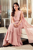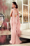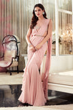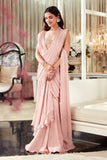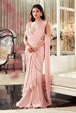 Embroidered net blouse with chiffon draped saree paired with embroidered belt