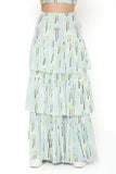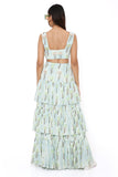 PALE BLUE SMALL PALM GEORGETTE PRINTED EMBROIDERED TOP WITH EMBROIDERED FRILL SKIRT Sale price$620