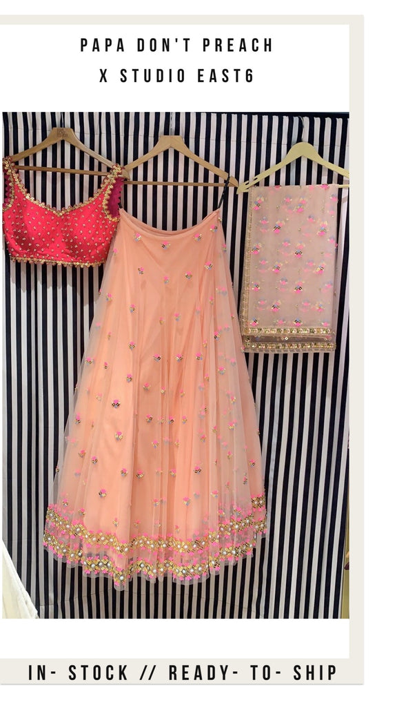 Papa Don't Preach Bespoke Coral Lehenga - Ready To Ship