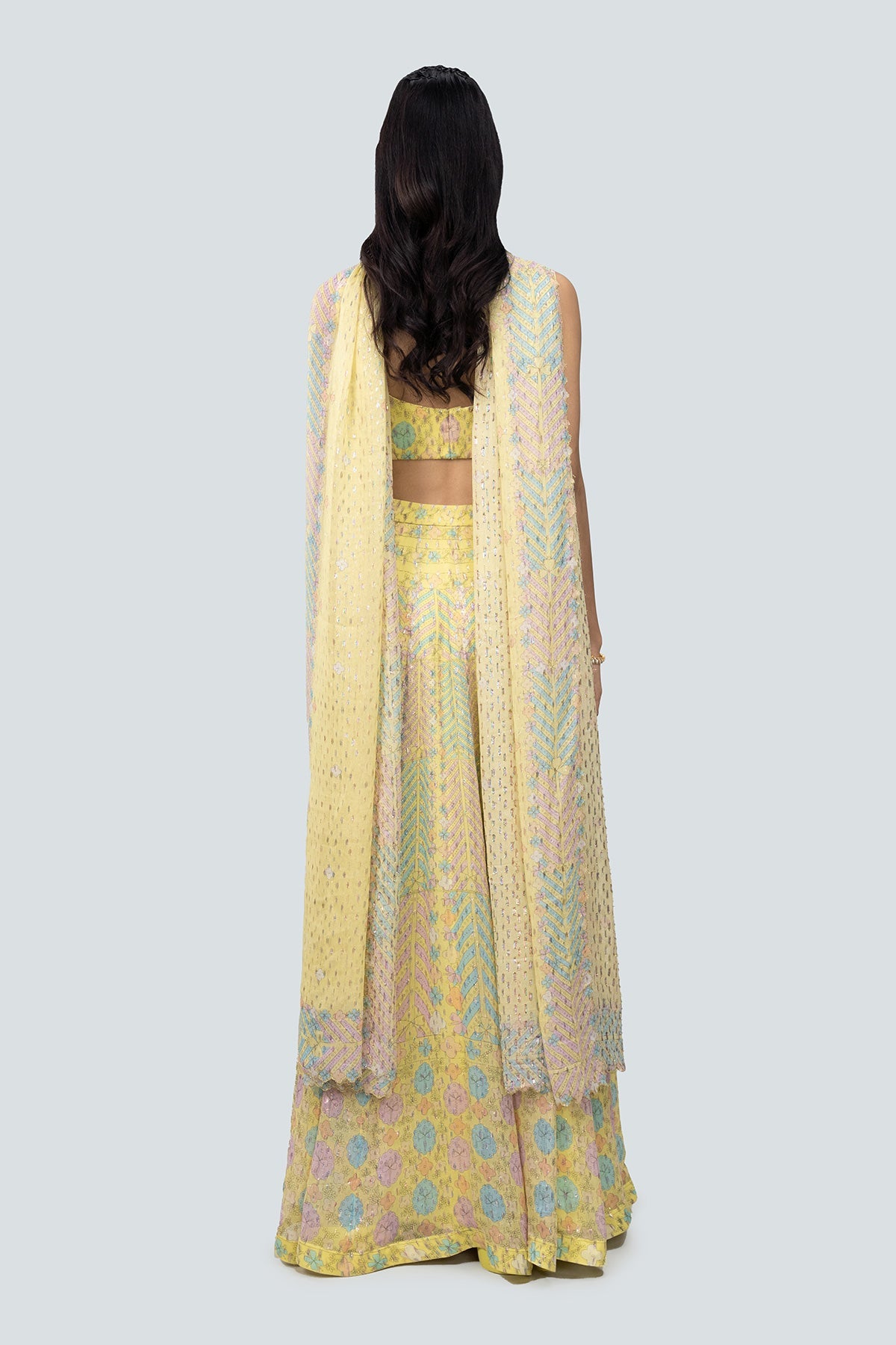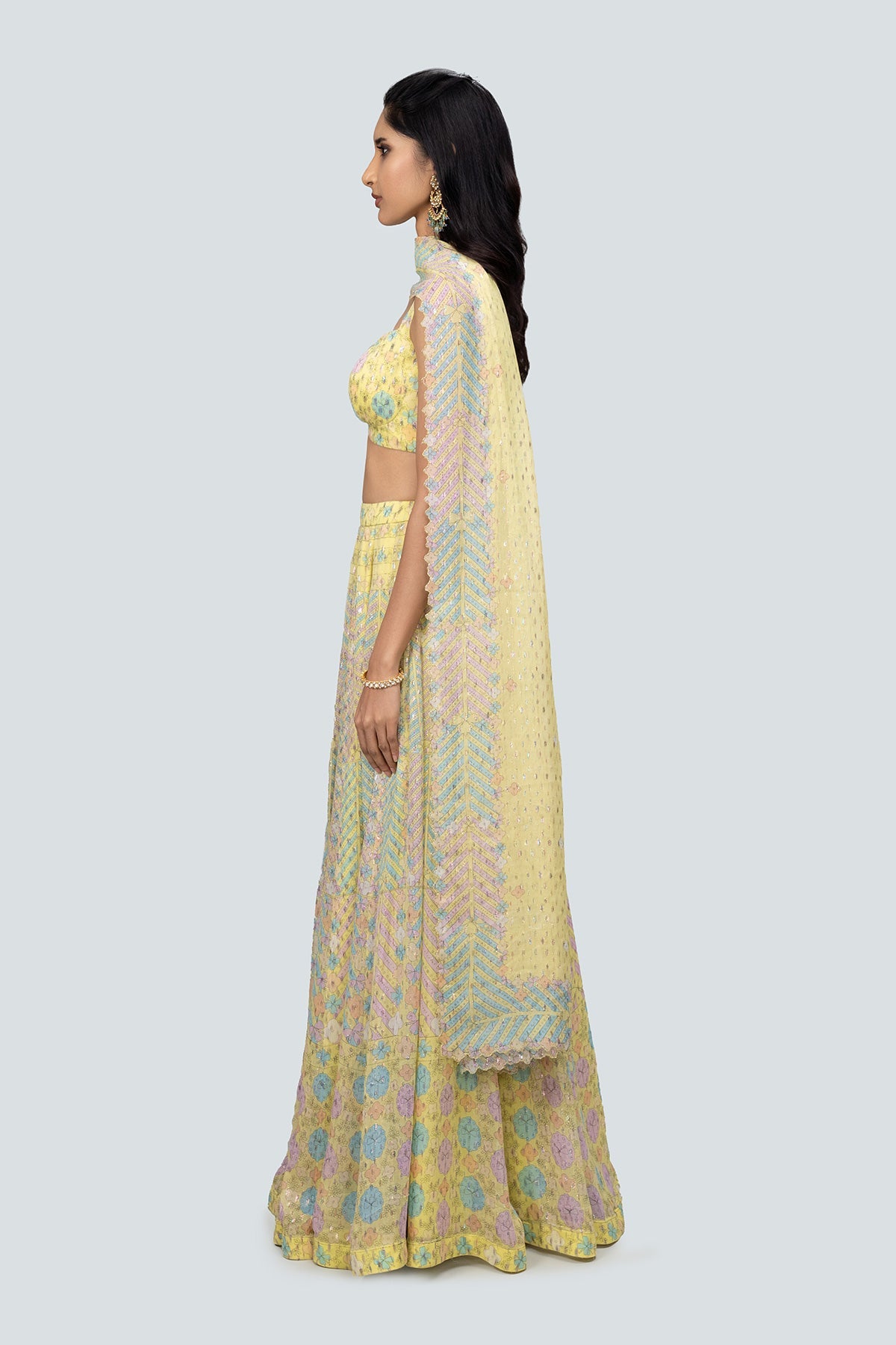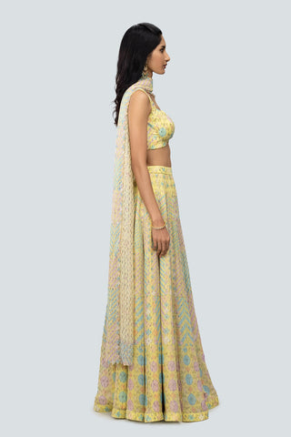 Printed Light Viscose- Georgette Dobby Lehenga And Sleeveless Blouse And Dupatta.