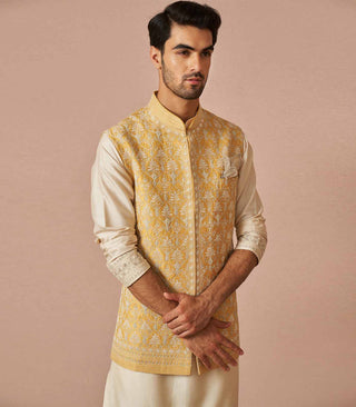 Pastel yellow rawsilk kiaan bandi set
