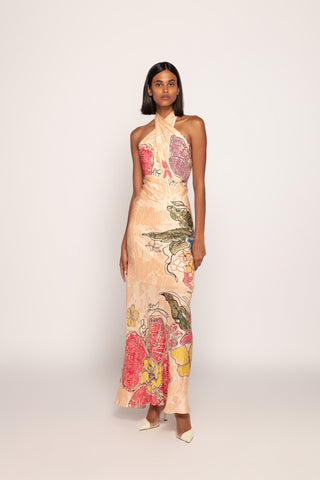 Periwinkle Bandhani Print Halter Style Maxi Dress