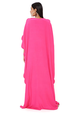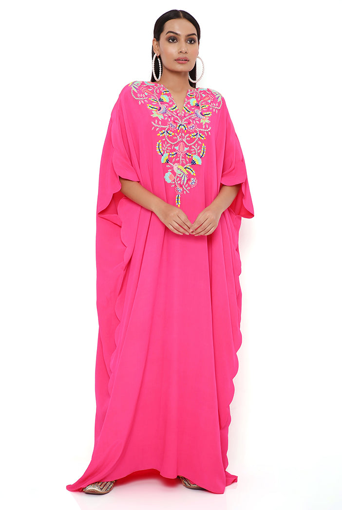 PINK CREPE EMBROIDERED SCALLOPED KAFTAN
