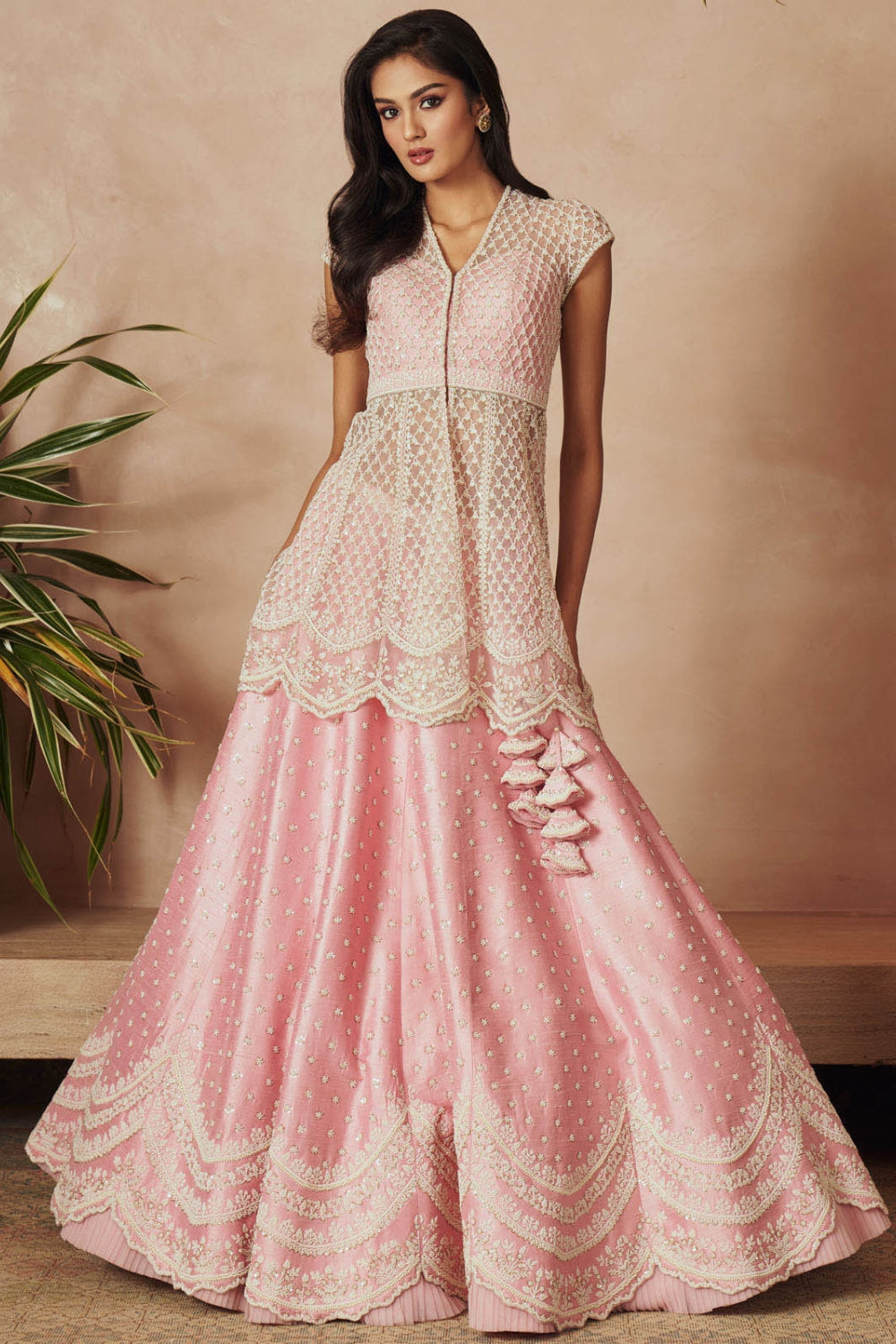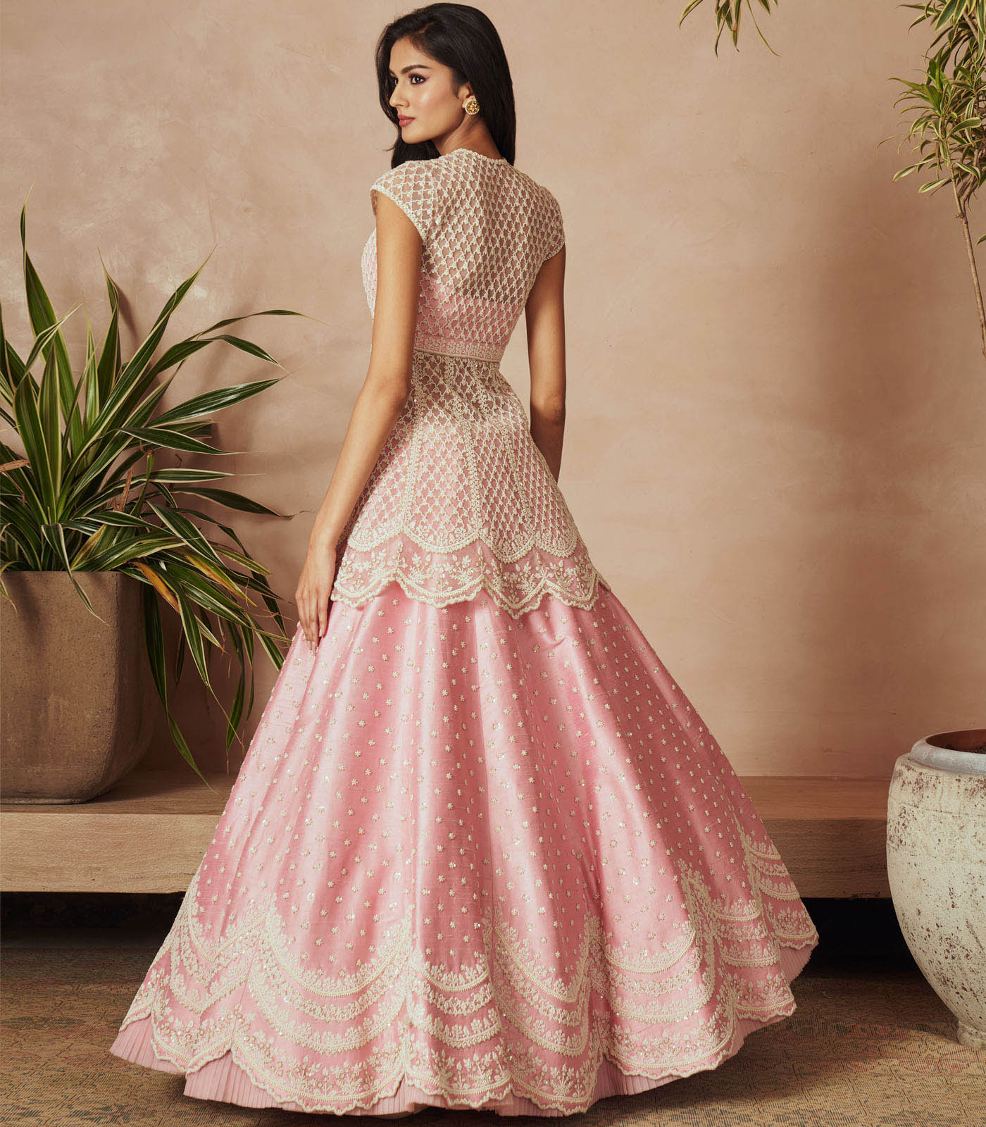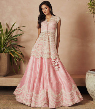 PINK NET MUGHAL PEARL WORK JACKET SET