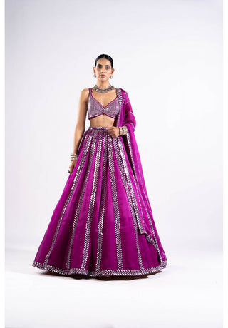 Pop Wine Mirror Seam Lehenga Set