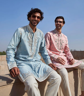 POWDER BLUE GEOMETRIC CREEPER KURTA