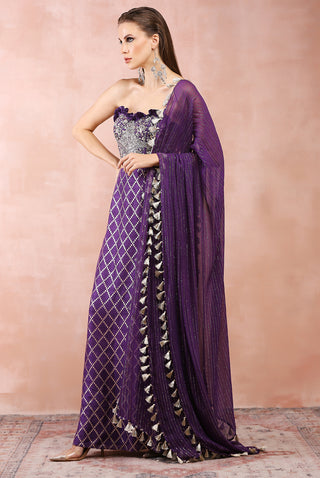 PURPLE EMBROIDERED CORSET BUSTIER WITH SKIRT AND DUPATTA Sale price$565