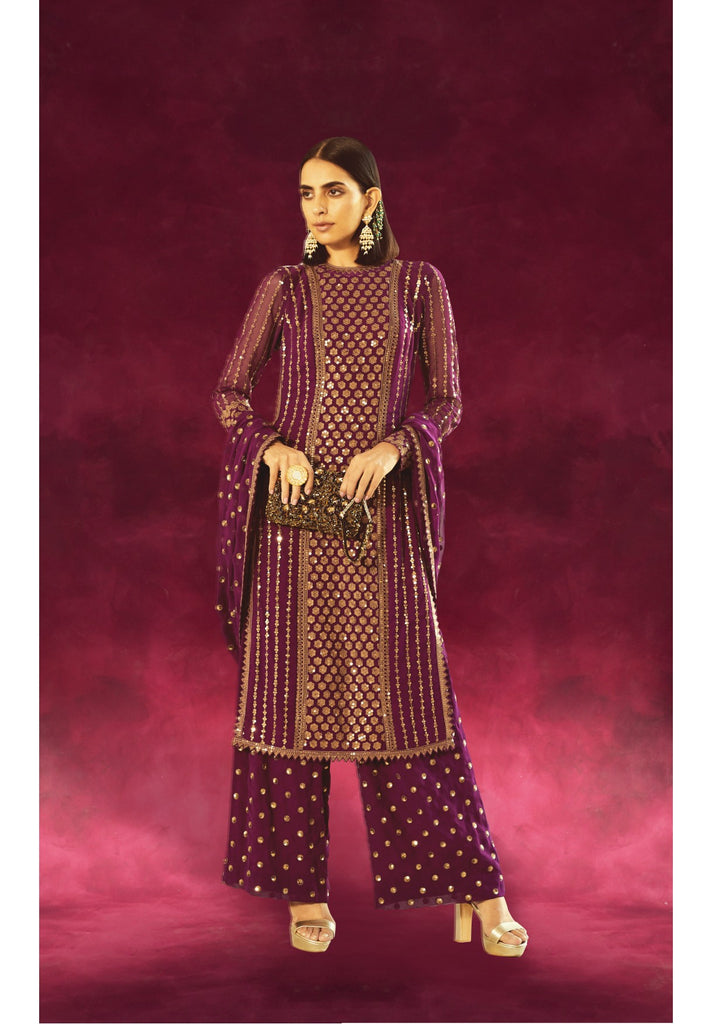 Intricately hand embroidered with sequin , thread and zari Kurta palazzo dupatta set