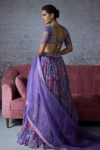 HEAVILY EMBROIDERED LEHENGA WITH EMBROIDERED SCOOP NECK BLOUSE AND DUPATTA FEATURING EMBROIDERED BORDERS