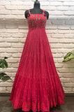 Label Anushree: Pink maxi dress with hand work detail on the yoke and threadwork all over of the dress, finished with fun, hand done colourful tassels on the strap.
