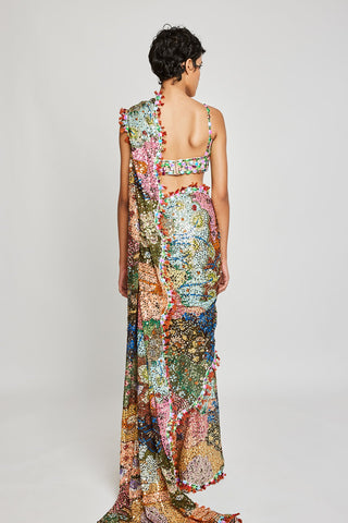 Our Trencadís sequinned saree with tassel detailing and embellished blouse.