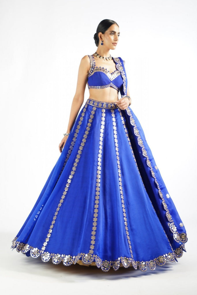 Royal Blue Flower Linear Lehenga Set Sale price$1,140