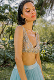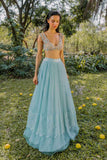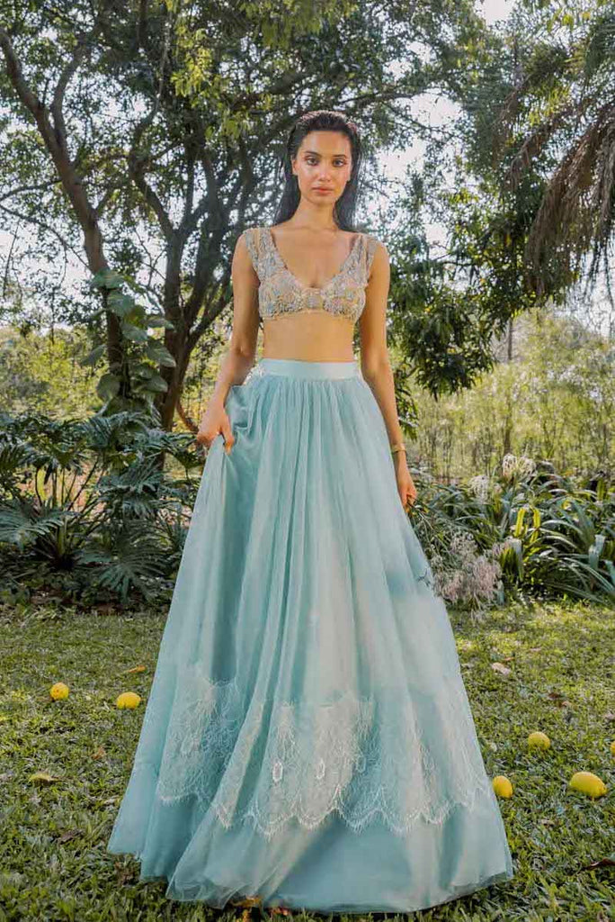 Vintage tulle skirt with lace; hand embroidered slinky tulle blouse, comes with a tulle dupatta with a lace edge