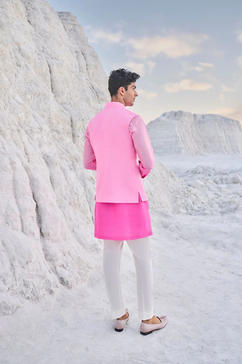 This set features a matka silk bundi, an ombre dyed kurta along with straight cotton pants.