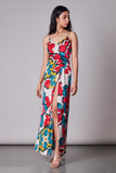 Ikat print overlap dress with customisable side slit