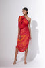 Hand micro pleated sari dress with mirror and thread hand embroidery